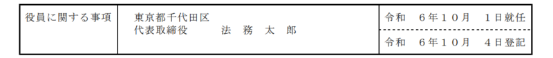 新しく就任する代表取締役は(現時点で登記簿に記載されていないので)問題ありませんが、再任の方はこのようになります。↓
